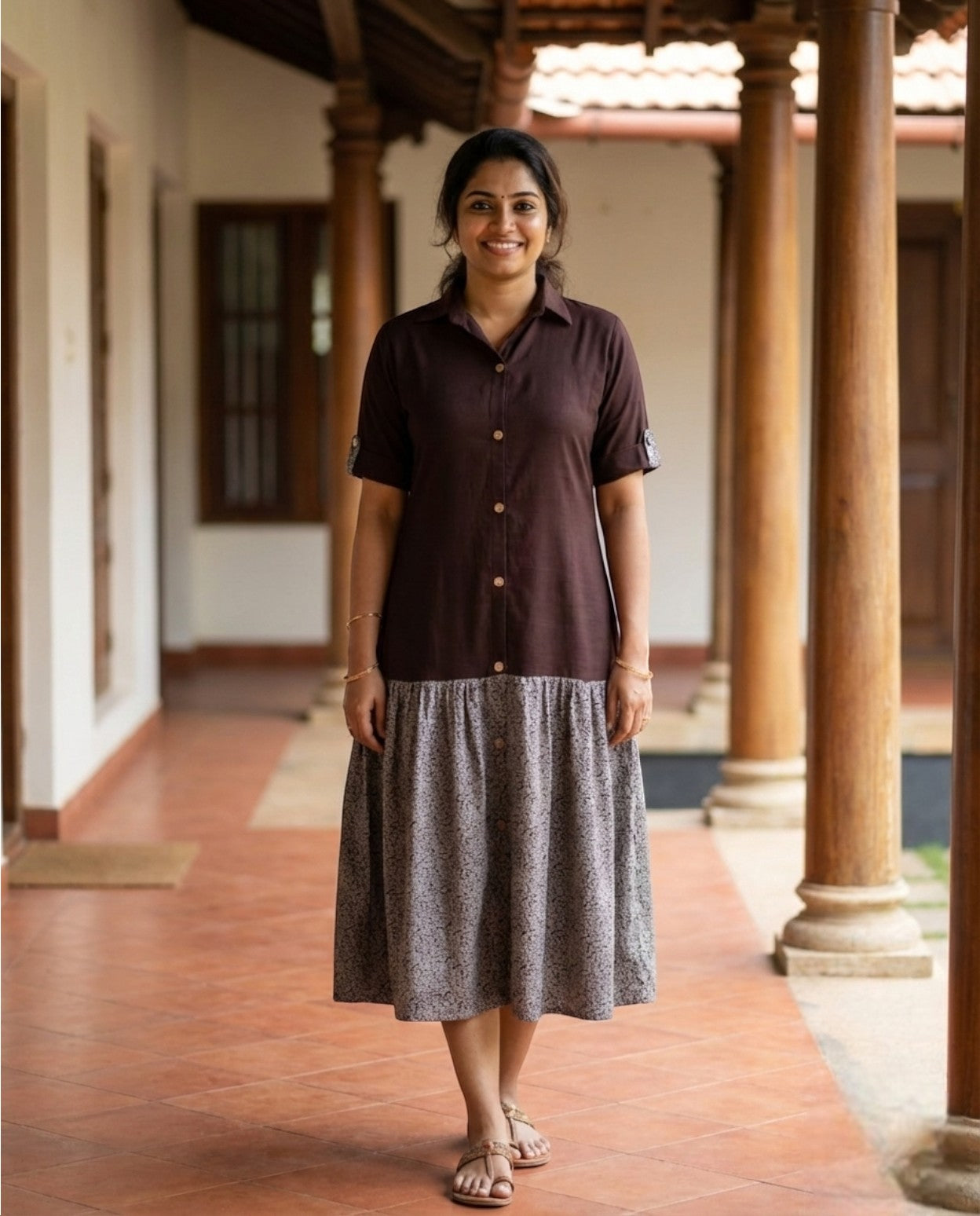 We prioritize all-day comfort. Most of our collection, including our daily wear frocks, nighties, and Co-Ord sets, is crafted from good Quality Breathable Cotton and cotton variants, soft rayon, or durable poly-crimp blends. These fabrics are chosen specifically to be gentle on the skin and perfect for the Indian climate.