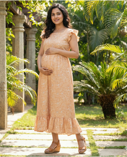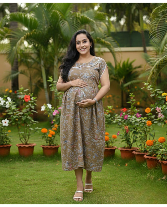 Butterfly Sleeved Floral Maternity Cum Feeding Frock