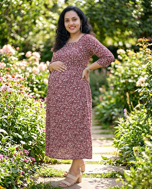 Long sleeved Flared Maternity cum Feeding Frock